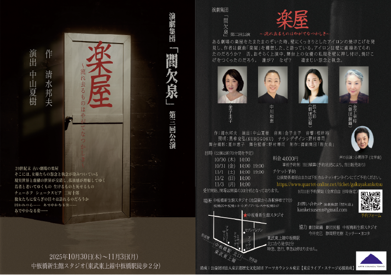 出演:倉田 楽(劇団楽)/水沢 綾(企画ユニットあいてむぼっくす)/ 山口礼子(地球儀)/ 長沢彩乃 / 野田香保里(劇団民藝)/ 吉田 光(The All Mighnority)/ 高橋ゆな / 佐藤英征 / 金谷ひろし(萬國四季協會)